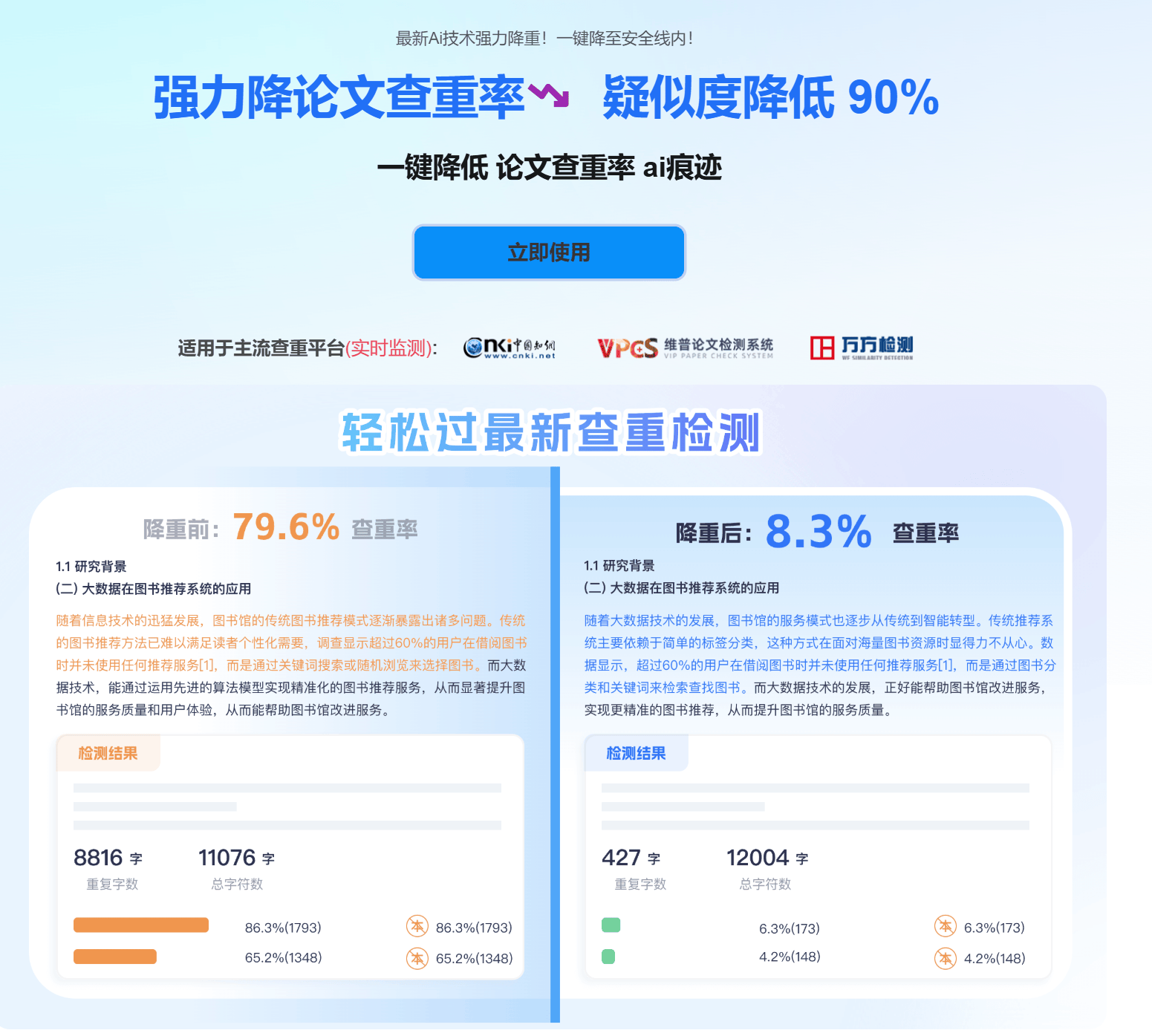 Checkccb AI论文采用语义深度重构技术,并非简单替换论文词汇,而是在保留论文核心观点与学术逻辑的基础上,优化论文句式结构与表达风格,可将论文知网查重率稳定控制在10%以内,同时提供知网、维普双平台论文查重报告,确保论文检测结果真实可靠。